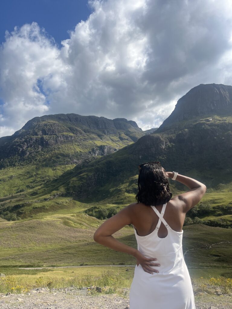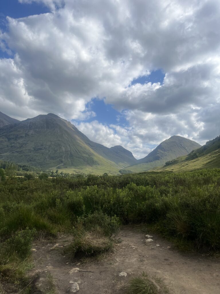 Standing in the Scottish highlands, with the whole of sky and earth before me, I could see clearly that the great Diana Gabaldon had indeed said it best: “[QUOTE].” In mid-August, Glencoe is a swath of rolling green hills.